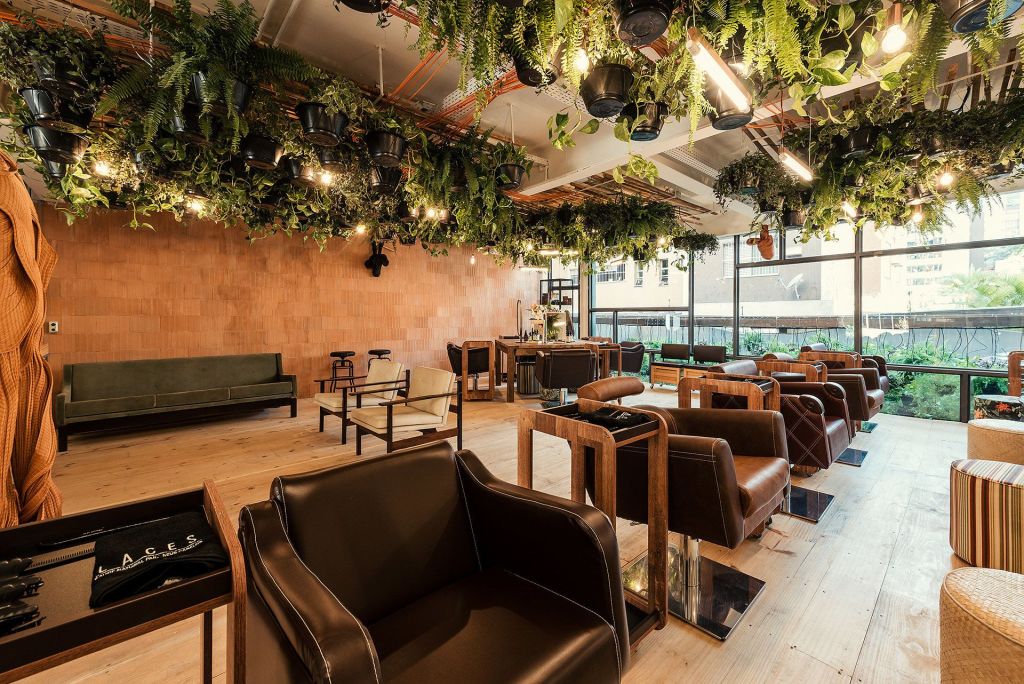 Além de ser uma técnica que ressalta a importância do bem-estar, o Design Biofílico também é uma estratégia que pode trazer resultados positivos para os negócios. No projeto Terraço Laces, a paisagista utilizou este recurso para também reforçar o propósito da marca. Da porta de entrada até os 3 níveis do prédio ocupado pelo salão, há uma variedade de recursos de design biofílico, desde o uso de vegetação até a relação delas com a iluminação e temperatura do ambiente.