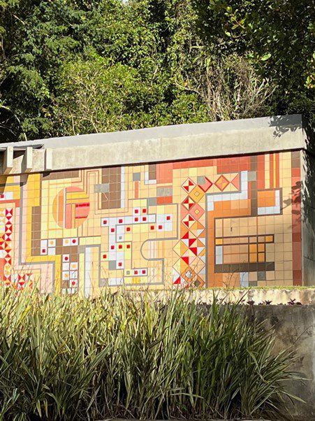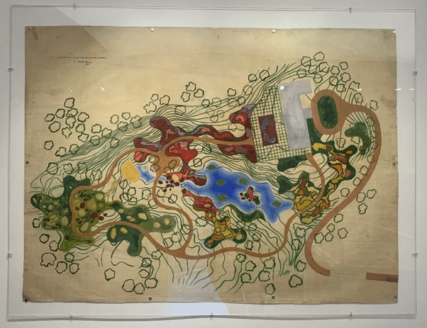 O passo seguinte seria identificar e reintroduzir espécies originalmente usadas por Burle Marx, devolvendo as cores aos canteiros conforme projetado por ele. Ocorre que, como explicou Daniela, com as mudanças climáticas ao longo das décadas, hoje algumas dessas espécies não vingam como antes. Foi necessário substituí-las por outras, mas mantendo o colorido original. Por exemplo, nas manchas multicolores, como abaixo, – em que o paisagista utilizou a Cinerária (Senecio douglasii), o Coléus (Solenostemon scutellarioides) amarelo e o vinho, e a Iresine (Iresine herbstii) -, Daniela teve que substituir a Cinerária por Liríope variegata (Liriope muscari ‘Variegata’) e o Coléus amarelo pelo Pingo-de-ouro (Duranta erecta aurea); por outro lado, foi mantida a Iresine (Iresine herbstii), como no original, pincelando a paisagem de vermelho vivo, e Daniela usou-a também para substituir o Coléus vinho.